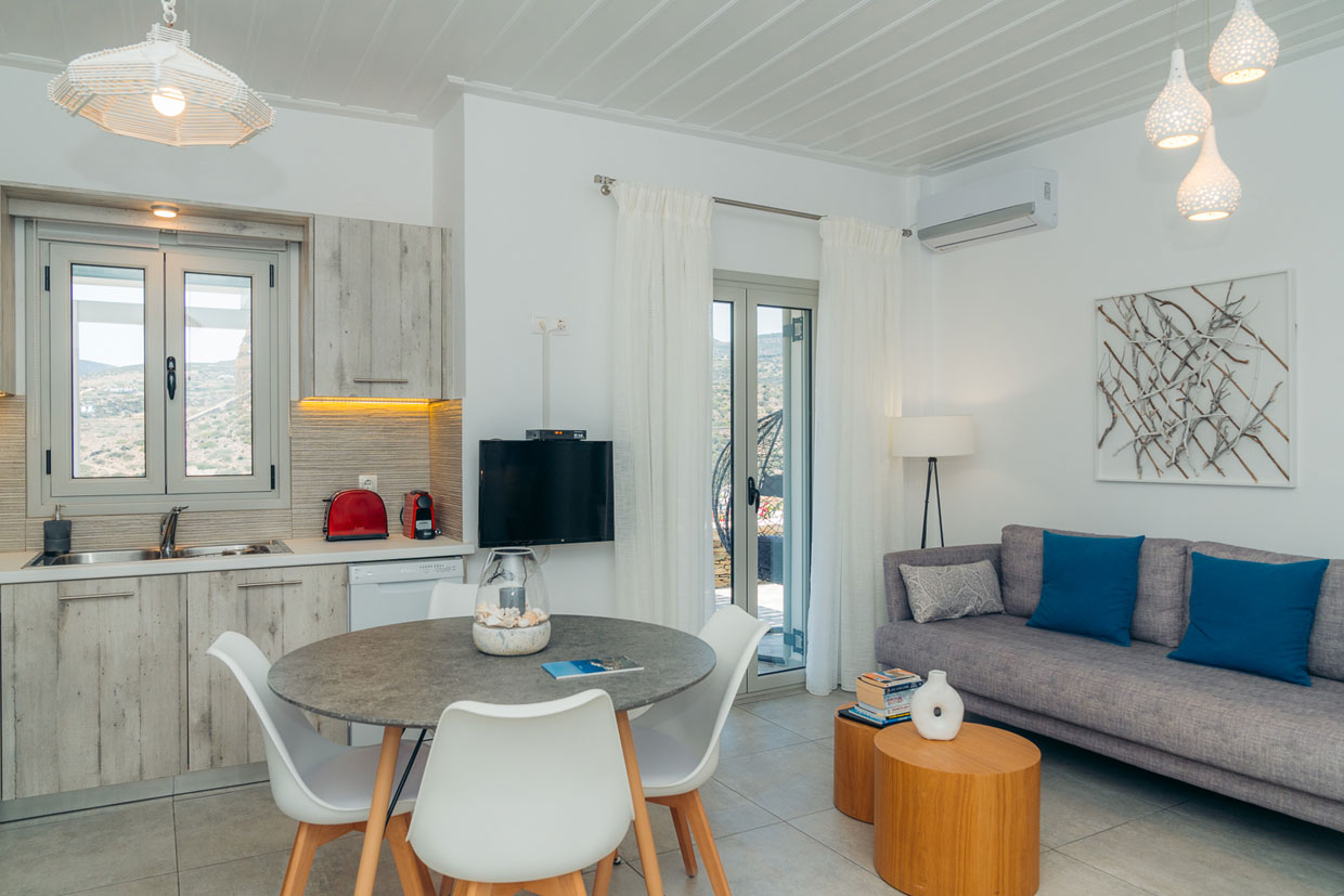 Με την πλήρως εξοπλισμένη κουζίνα και το σε κοντινή απόσταση μίνι μάρκετ, μπορείτε να απολαύσετε μια ζεστή οικογενειακή ζωή στο νησί.